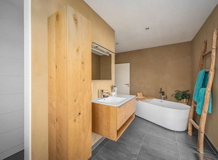 Das Tageslichtbadezimmer ist mit einer Badewanne, einer Dusche, einem Bidet, einem Waschbecken und einer Toilette ausgestattet und bietet Ihnen viel Raum für Entspannung. Das großzügige Ankleidezimmer sorgt für viel Stauraum und Ordnung. In den Wohnräumen wurde Laminat verlegt, während das Badezimmer mit modernen Fliesen ausgestattet ist.