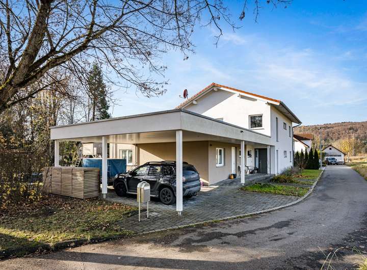 Willkommen in diesem exklusiven Fertighaus der renommierten Firma Weber, das 2017 in KfW 55-Standard erbaut wurde. Das Haus steht auf einem großzügigen, eingewachsenen Grundstück von 876 m² und bietet Ihnen sowohl eine ruhige Lage als auch eine ideale Anbindung: Der Ortskern und der Bahnhof sind fußläufig erreichbar, sodass Sie von der perfekten Balance zwischen Ruhe und guter Erreichbarkeit profitieren.