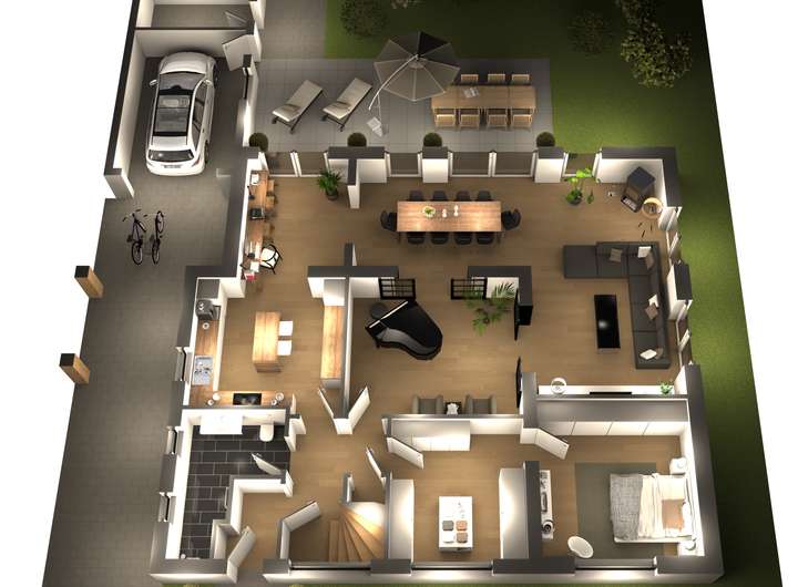 - hochwertige Einbauküche, z.T. Rolläden, z.T Raffstores, z.T. Fußbodenheizung, größtenteils 3-Fach-Verglasung.