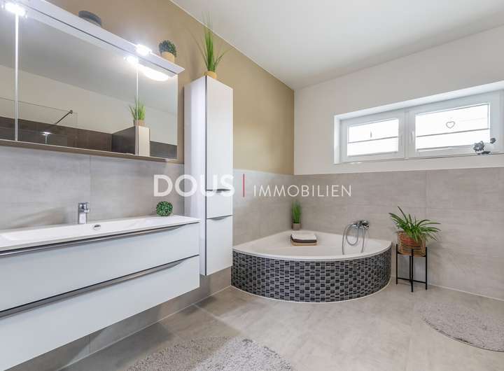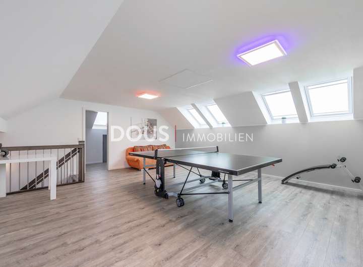 Das Badezimmer befindet sich im Erdgeschoss und ist mit einer Badewanne, einer separaten Dusche sowie modernem Interieur ausgestattet. Im Obergeschoss erwartet Sie ein großzügiges Dachstudio, das sich flexibel als Kinder- oder Arbeitszimmer, Hobbyfläche oder Gästezimmer nutzen lässt.