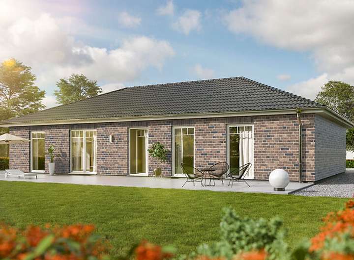 Familienleben auf einer Ebene - Der Bungalow 131 hat es in sich – 5 Zimmer, zwei Kinderzimmer und zwei Bäder – viel Wohnfläche und clever nutzbarer Stauraum für die ganze Familie. Die kluge Raumaufteilung bietet eine große Wohnküche in der Sie mit ihren Lieben Freizeit und Essen genießen können. Das traumhafte Wohnzimmer mit seinen großen Fenstern ist der perfekte Ort zum Entspannen, bietet freien Blick in Ihren Garten und mit wenigen Schritten sind Sie auf Ihrer Terrasse im Grünen.