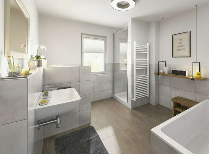 Badausstattung mit Fliesen (Format 30 x 60 cm)