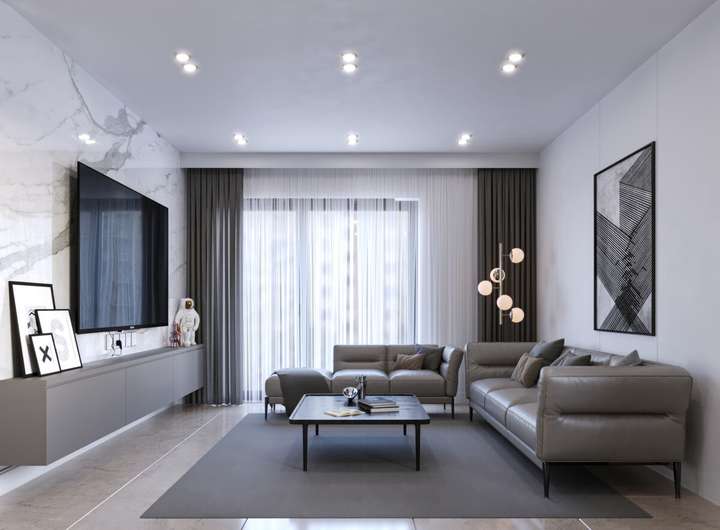 - Hochwertige 80 × 80 cm Bodenfliesen in den Wohnbereichen