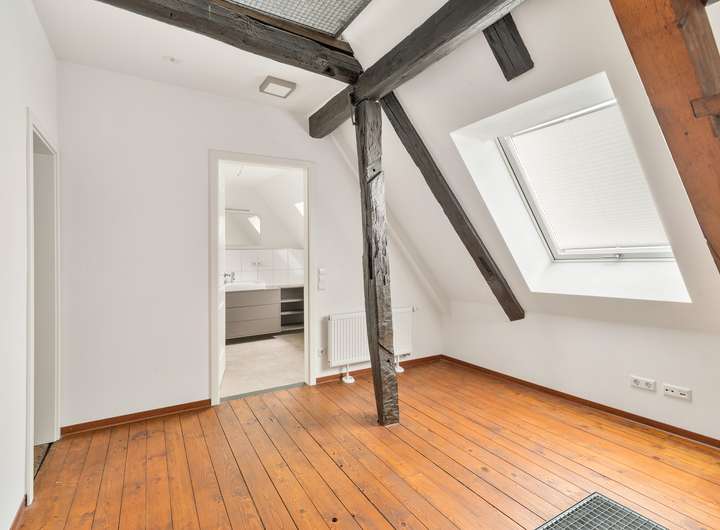 allein das Dachgeschoss verfügt über eine Grundfläche von ca. 40 qm, welche durch die Dachschräge lediglich mit 18 qm Wohnfläche berechnet wird - der Raum jedoch wirkt deutlich größer.