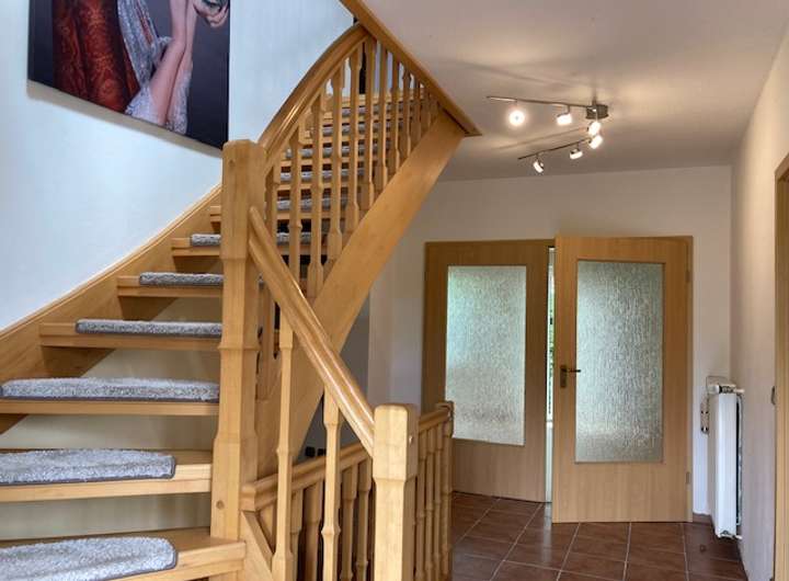 ca. 162 m² Wohnfläche, 5 Zimmer, Küche mit Fußbodenerwärmung, Duschbad im Erdgeschoss, Bad mit Eckwanne, Dusche und Fußbodenerwärmung im Obergeschoss, Süd-Terrasse, Süd-Loggia, Vollkeller, Abstellboden, Gas-Zentralheizung Bj. 1998, Ofenanschluss möglich,