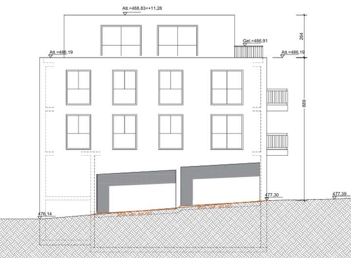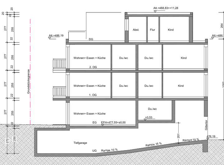 Neubau Mehrfamilienwohnhaus (9 WE) mit Tiefgarage 5 St, 4 Stellplätze im EG
