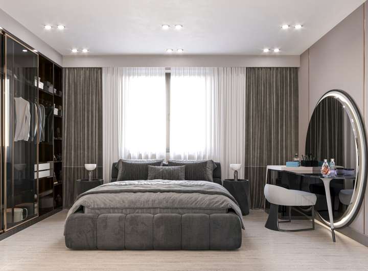 Auf etwa 124 Quadratmetern Wohnfläche stehen insgesamt vier gut proportionierte Schlafzimmer zur Verfügung. Ein Abstellraum ergänzt die praktische Seite des Wohnens. Das Badezimmer verfügt über eine Badewanne und eine große Dusche und unterstreicht den hochwertigen Charakter der Wohnung.