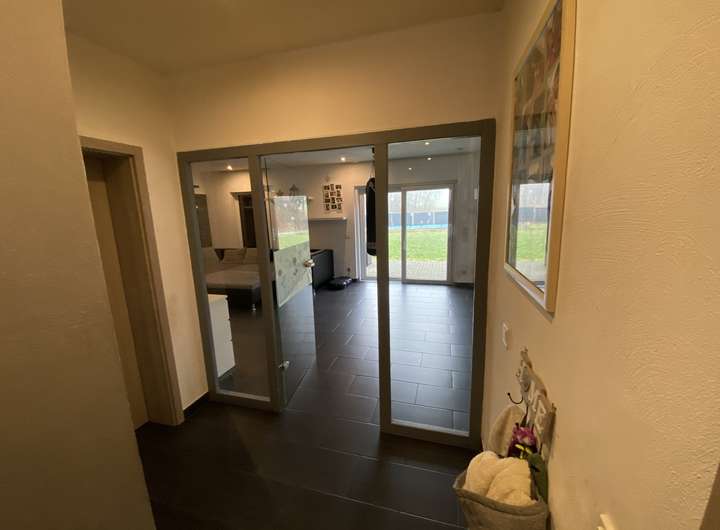 Großzügig aufgeteilt, offen gestaltet und mit herrlichem Blick auf das rückwärtige Grundstück sowie direktem Zugang zum Terrassenbereich.