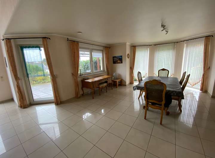 Dieser großzügig gestaltete Bungalow überzeugt durch seine harmonische Architektur, lichtdurchflutete Räume und eine idyllische Lage, die Ruhe und Lebensqualität vereint.