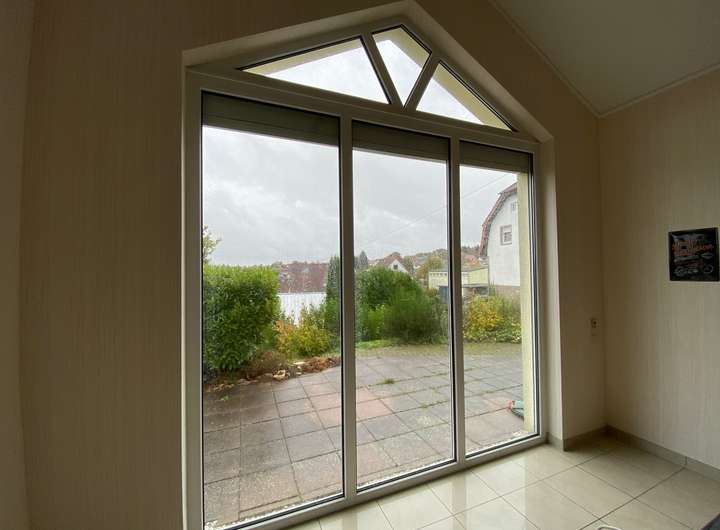 Hohe Fensterelemente sorgen hier für ein helles, freundliches Ambiente und eröffnen den Blick ins Grüne.