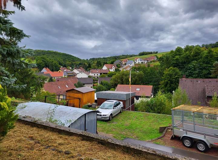 Eingebettet in die idyllische Landschaft des Nordpfälzer Berglands überzeugt das Grundstück durch seine Großzügigkeit und die vorhandene, 1979 errichtete Garage mit angrenzendem Werkstattraum.