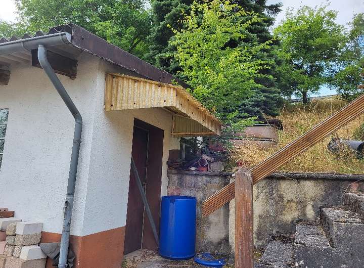 Ein fertig ausgearbeiteter Bauplan für ein Einfamilienhaus liegt bereits vor. Dieser sieht vor, die bestehende Garage mit angrenzendem Werkstattraum als Fundament für den Neubau zu nutzen – eine effiziente und ressourcenschonende Lösung, die Bauinteressierten einen klaren Vorteil bietet.