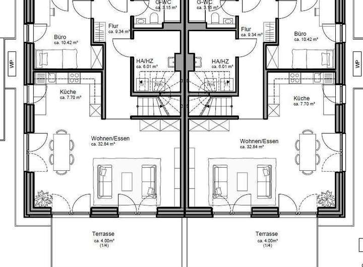 Abgerundet wird jede Doppelhaushälfte mit einem Carport sowie einem Kfz-Außenstellplatz, inklusive Vorrüstung für E-Mobilität und persönlichen Abstellraum.