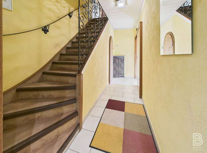 - Holztreppe ins OG, Betrontreppe in den Keller