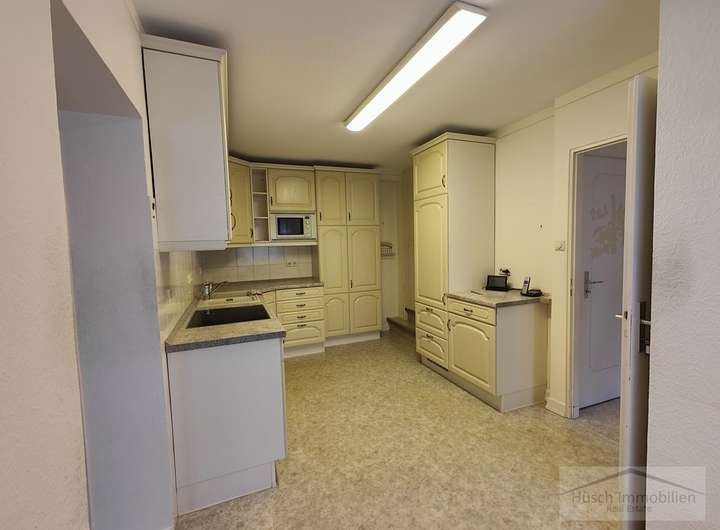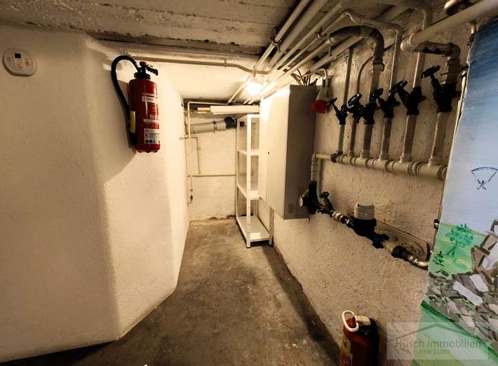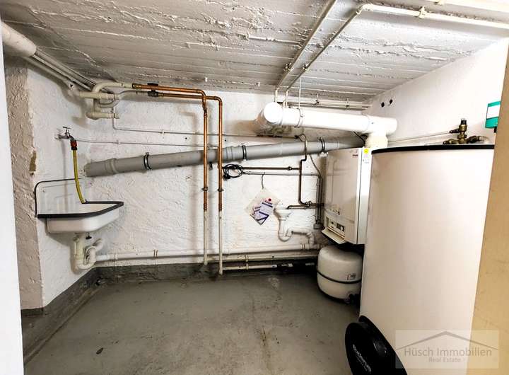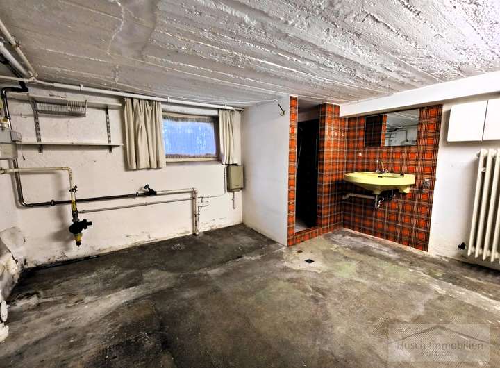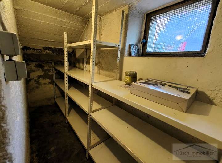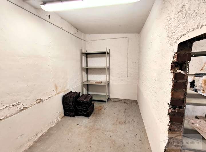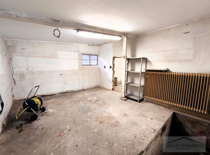 Im Hof, auf dem problemlos zwei bis drei Autos Platz finden, liegen die beiden Garagen sowie der Zugang zu den angrenzenden Nebenräumen. Die ebenerdigen, großzügigen Räume eignen sich hervorragend als Lagerflächen oder als Werkstatt. Insgesamt stehen hier drei separate Räume zur Verfügung.