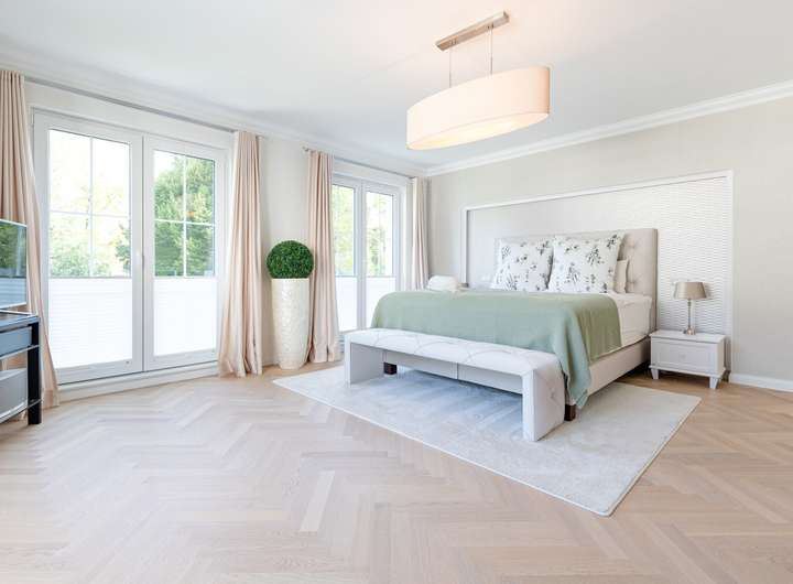 - Alle Räume mit Parkettboden: im EG Versailles – Parkett im Wohnzimmer und Diele im restlichen Wohn-/Essbereich, im 1.OG Fischgrät-Parkett