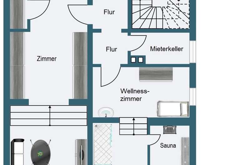 - Keller- und Wellnessbereich mit Sauna sowie Zugang zu Terrasse und Garten im UG