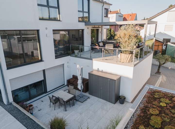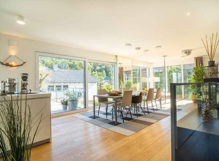 Ein besonders hochwertiges Massivhaus in ruhiger, begehrter Südwest-Hanglage. Großzügiges Wohnen in lichtdurchfluteten Räumen. Moderne Architektur, eine sehr hochwertige Ausstattung und besonders niedrige