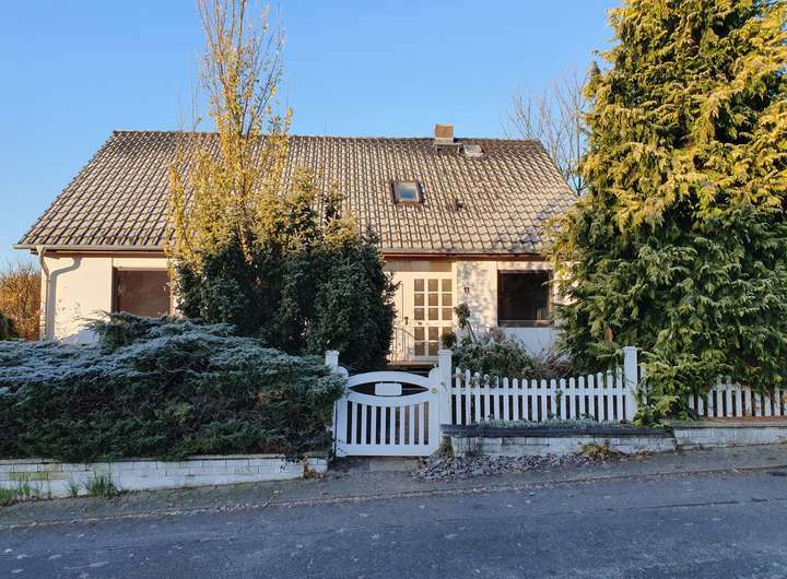 Dieses Einfamilienhaus befindet sich in Braunschweig im Stadtteil Jägersruh/Mascherode. Das 1970 erbaute Haus liegt in ruhiger landschaftlich reizvoller Lage nahe des Heidbergsee am Ende eines Stichweges auf einem Grundstück mit ca 704 m². Die Wohnfläche wurde 1978 durch einen Anbau auf ca 195 m²erweitert. Das Haus verfügt über 6 Zimmer und 2 Badezimmer. Im Erdgeschoss befinden sich die Küche, ein Duschbad, 2 Schlafzimmer sowie das große Wohn-/ Esszimmer, über das man Zugang zum großen Garten mit Westausrichtung hat. Im Dachgeschoss gibt es 3 Zimmer, von denen 2 Zimmer verbunden sind und das zweite Duschbad. Das Arbeitszimmer im Dachgeschoss ist durch die große, bodentiefe Fensterfront lichtdurchflutet und bietet einen fantastischen Blick in den Garten. Das Dachgeschoss bietet die Möglichkeit einer Einliegerwohnung. Das Haus ist teilunterkellert und hat eine Garage im Kellergeschoss mit direktem Zugang zum Haus. Zusätzlich gibt es neben dem Haus noch einen Einstellplatz.