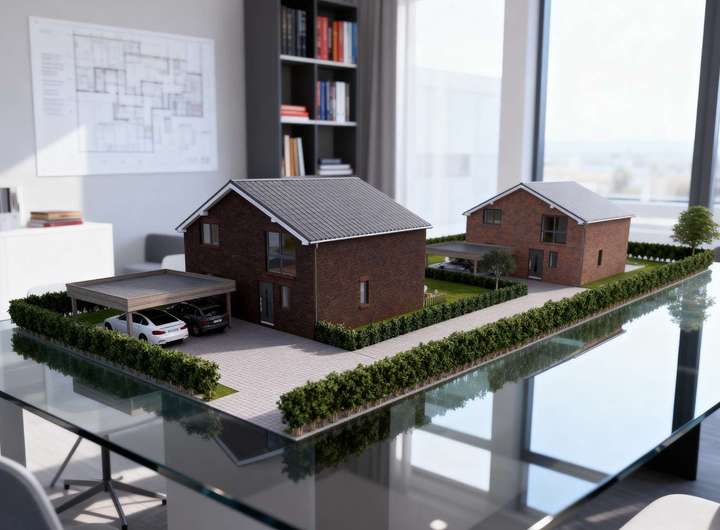 Das Grundstück selbst präsentiert sich mit viel Potenzial und Freiraum für Ihre individuelle Gestaltung eines modernen Einfamilienhauses. Die dargestellte Visualisierung zeigt ein Einfamilienhaus im KfW40-Standard mit einer Wohnfläche von ca. 142m², das zusätzlich erworben und individuell geplant werden kann.