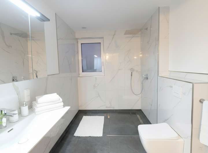 - Ein stilvolles Badezimmer mit luxuriösen Armaturen und einer entspannenden Dusche