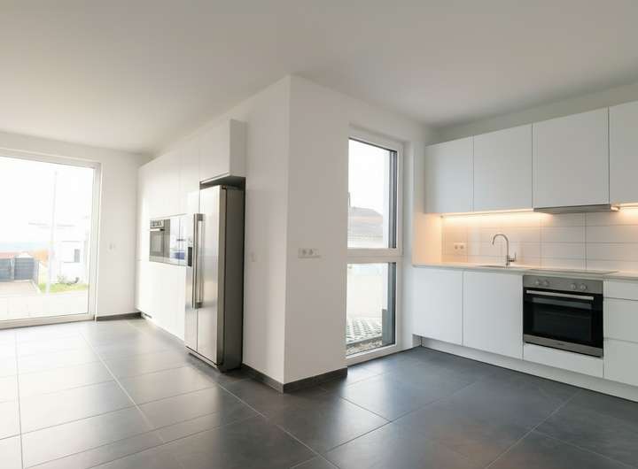 - Raum für eine offene Küche mit modernen Elektrogeräten und ausreichend Stauraum