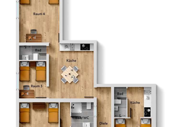 - Belegung: mindestens 4 Personen