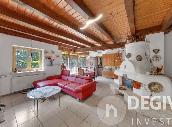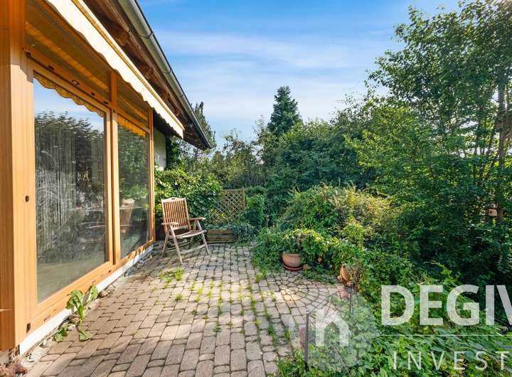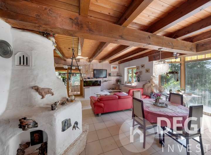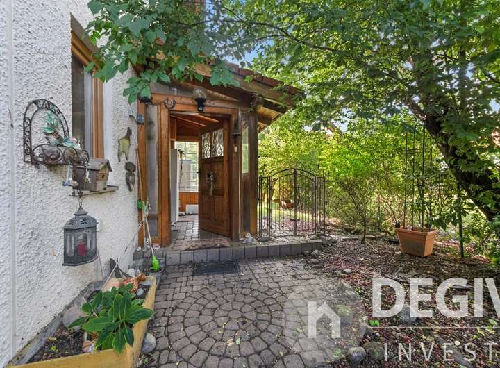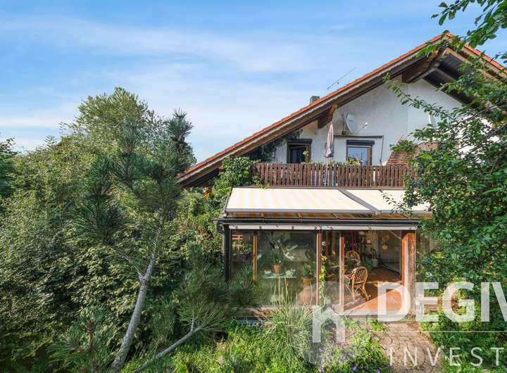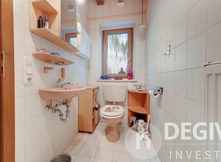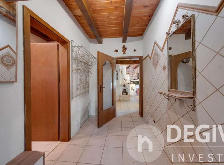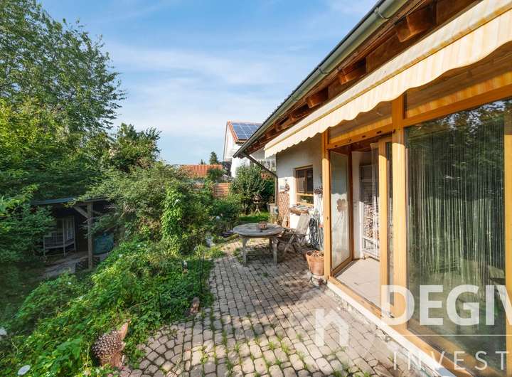 Das komplette Erdgeschoß inklusive Wintergarten ist mit Fliesen und Fußbodenheizung ausgestattet. Der sonnige Wintergarten ist mit elektrischen Aussenmarkisen versehen. Der lichtdurchflutete Essbereich mit offenem Erker eignet sich bestens für gesellige Abende. Im Wohn- und Essbereich befindet sich ein Kamin welcher im Winter für behagliche Wärme und Atmosphäre sorgt. Im Erdgeschoß befindet sich ein kleines Bad, im Obergeschoß eines mit Badewanne und Doppelwaschbecken. Eine zentrale Staubsaugeranlage erleichtert die Hausarbeit. Der große eingewachsene Garten ist eine grüne Oase mit Bachlauf und Teich und der ideale Platz zum Entspannen auf der großzügigen Terasse.