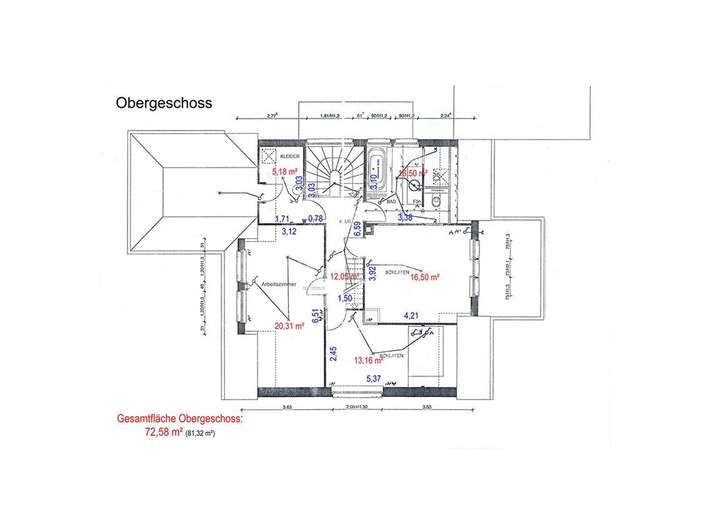Das Obergeschoss verfügt über drei Schlafzimmer, ein Badezimmer und eine Abseite, die zurzeit als begehbarer Kleiderschrank genutzt wird und über einen Wäscheschacht, der direkt in den Waschkellerraum führt, verfügt. Der ausgebaute Spitzboden eignet sich hervorragend als großzügiges Schlaf-/Arbeitszimmer mit eigenem Badezimmer.