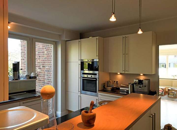 Siematic-Einbauküche, hochwertige Bäderausstattung, Kombination historischer Elemente mit moderner Funktionalität.