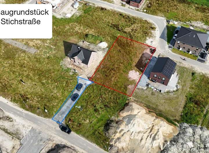 Das bebaubare Grundstück hat eine Fläche von ca. 755 m², die Stichstraße in Miteigentum des Nachbarn umfasst 135 m².