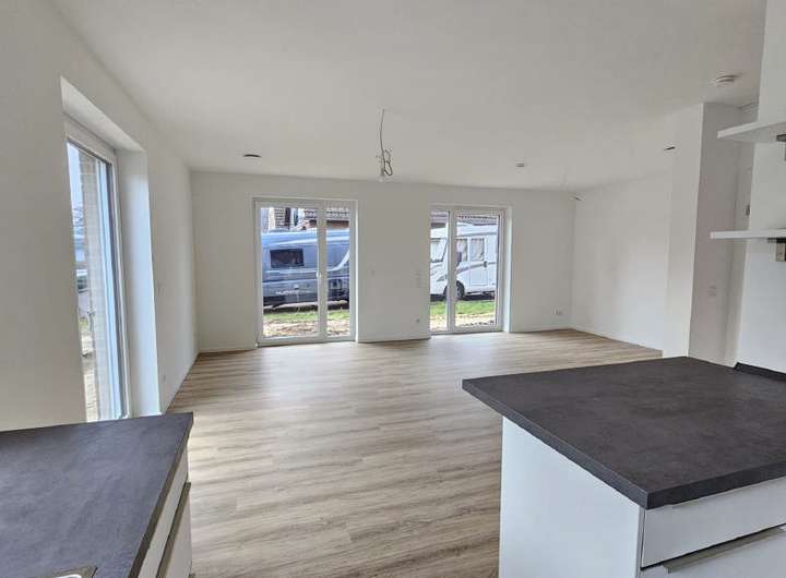 Diese neu gebaute Doppelhaushälfte vereint das Wohngefühl eines modernen Eigenheims mit den Vorzügen eines Mietobjekts - komfortabel, energieeffizient und rundum hochwertig ausgestattet. Bereits im Erdgeschoss entsteht durch den offenen Wohn- und Küchenbereich ein harmonischer Lebensmittelpunkt. Die moderne Küchenzeile mit hochwertigen Elektrogeräten fügt sich stilvoll ein und macht gemeinsames Kochen zum Erlebnis. Für Gäste steht im Entrée ein geschmackvolles Gäste-WC bereit, das den Empfangsbereich funktional und gleichzeitig repräsentativ abrundet.