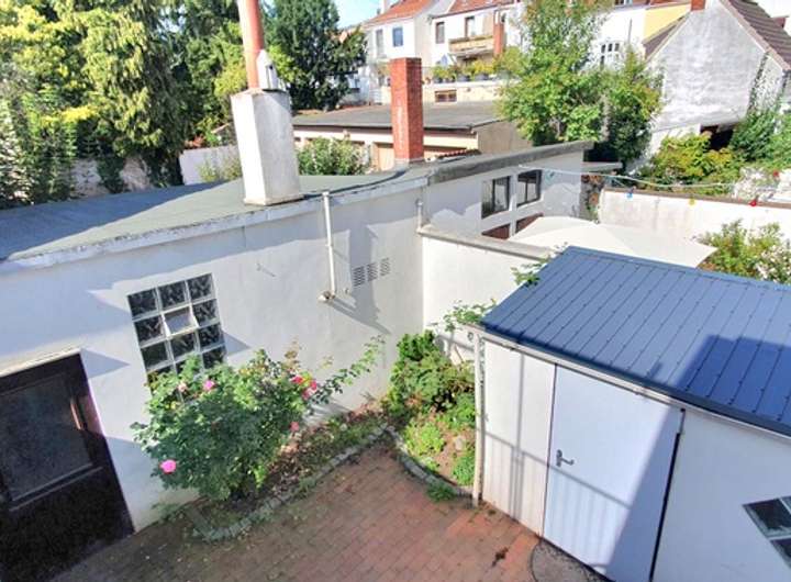 Das Gebäude in dreigeschossiger Bauweise mit Nebengebäuden und Teilkeller steht auf einem 133m² großem, sonnigen Grundstück und umfasst ca. 118m² Wohnfläche.