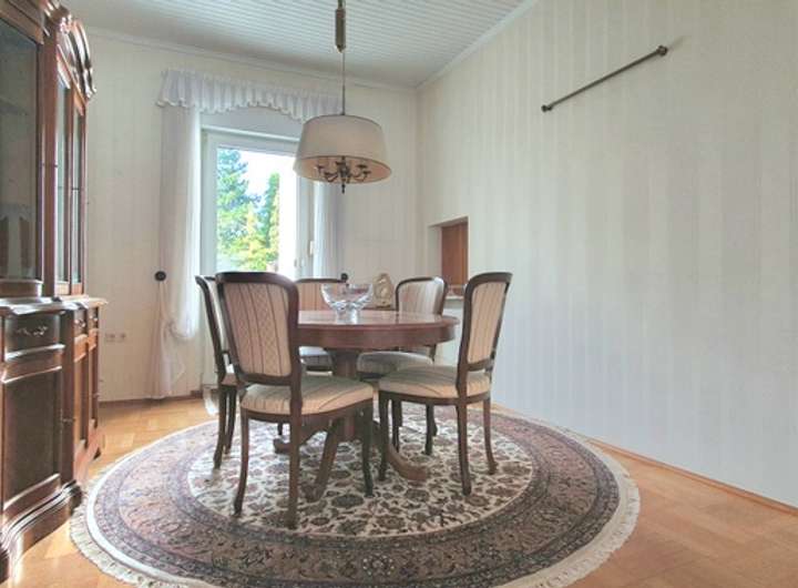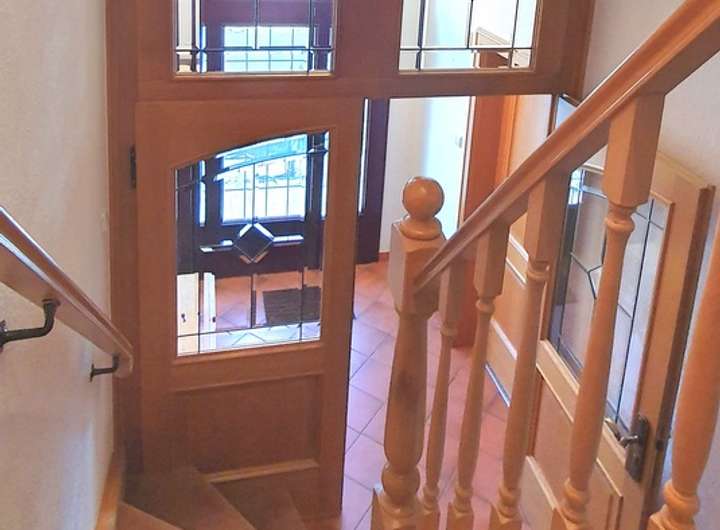 Die Fußböden bestehen überwiegend aus Echtholz-Parkett und Fliesen – im DG liegt Laminat.