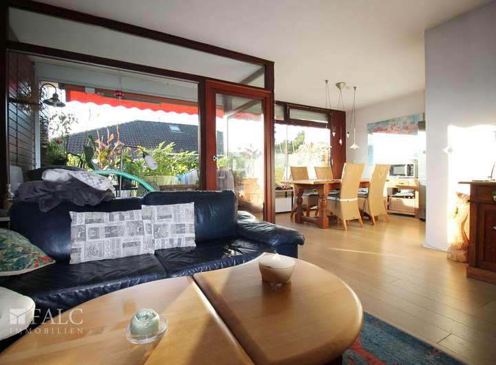 Beim Betreten dieses charmanten Apartments aus dem Jahr 1973 mit einer Wohnfläche von ca. 93 m² werden Sie von einem großzügigen Flur empfangen. Dieser führt Sie in das Herzstück der Wohnung: den Wohn- und Essbereich. Der Raum besticht durch einen eleganten Parkettboden und einen gemütlichen Kamin, der an kühlen Abenden für eine behagliche Atmosphäre sorgt. Große Fenster lassen viel Licht herein und bieten Zugang zum Balkon, der zum Entspannen im Freien einlädt.