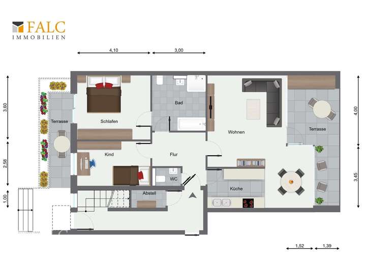| Gesamtmiete | 1.350 € (zzgl. Nebenkosten) |