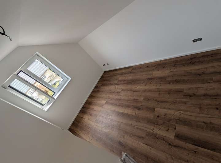 - Boden Design-Vinyl Eiche, Wände weiß gestrichen (hochwertige Silikatfarbe)