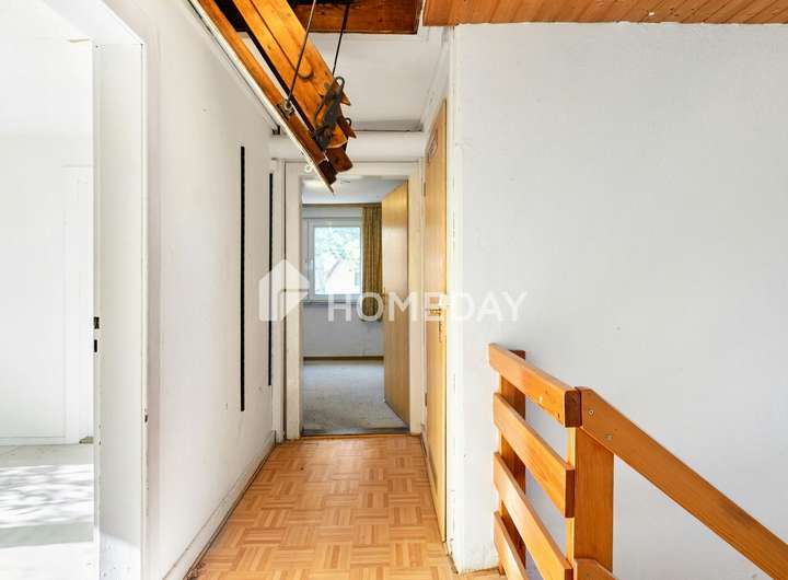 Im Obergeschoss setzt sich der großzügige Grundriss fort: Mehrere Schlafzimmer sowie ein weiteres Tageslichtbad schaffen Raum für Familienleben, Gäste oder ein separates Arbeitszimmer. Praktische Einbauschränke bieten zusätzlichen Stauraum und unterstreichen die durchdachte Aufteilung des Hauses. Darüber hinaus verfügt das Haus über einen teilausgebauten Dachboden, der bereits zusätzlichen Nutzraum bietet und weiteres Ausbaupotenzial bereithält.