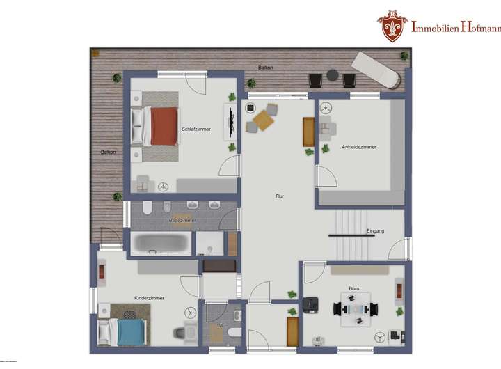 Dieses Exposé stellt kein Verkaufsangebot dar. Es dient allein Informationszwecken. Alle Angaben und Darstellungen in diesem Exposé wurden zwar mit größter Sorgfalt überprüft und zusammengestellt, sie können sich aber jederzeit ändern. Weder Immobilien Hofmann noch die übrigen Verantwortlichen sind verpflichtet, den Empfänger dieses Exposés über etwaige Änderungen zu informieren. Bei technischen Angaben wie z.B. Wohnungsgrößen, sind Abweichungen möglich. Bilder sind Interpretationen des Visualisierers. Bei den abgebildeten Grundrissvarianten, Innenraumdarstellungen und Abbildungen der Sanitär- und sonstigen Ausstattungen handelt es sich um unverbindliche Einrichtungsbeispiele. Maßgeblich für die geschuldete Ausstattung und Ausführung der betreffenden Immobilie sowie deren Grundriss sind allein der notarielle Kaufvertrag und die diesem beigefügten Baubeschreibungen, Pläne und Grundrisse. Weder Immobilien Hofmann noch die übrigen Verantwortlichen übernehmen eine Haftung für die Richtigkeit und Vollständigkeit dieses Exposés. Die Haftung für Vorsatz und grobe Fahrlässigkeit sowie für die Verletzung von Leben, Körper und Gesundheit bleiben unberührt.
