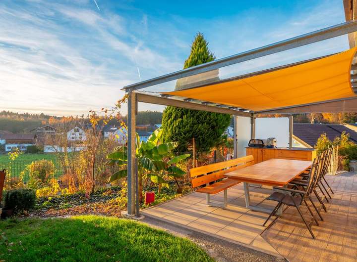 - eine sehr große Terrasse (Teilweise mit Überdachung) & Balkon