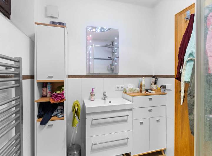 Das Haus wurde zuletzt im Jahr 2022 modernisiert und präsentiert sich in einem gepflegten und zeitgemäßen Zustand. Die Ausstattung ist praktisch und funktional, mit Fliesen und Laminat als Bodenbelag, die eine einfache Pflege und ein angenehmes Wohngefühl garantieren.