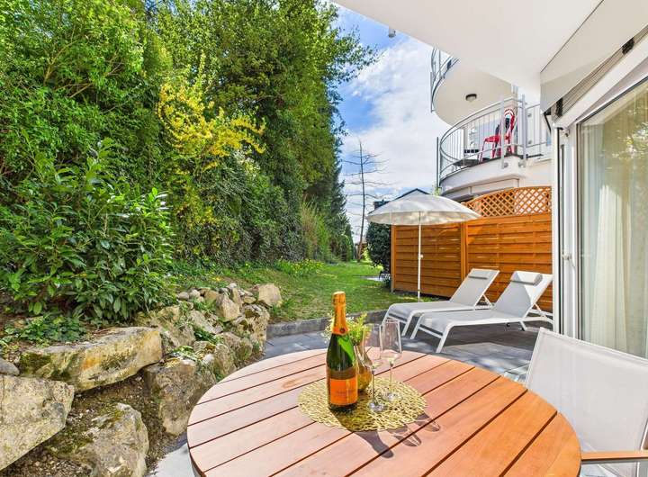 Die moderne, 2025 frisch sanierte und neu ausgestattete 2-Zimmer-Wohnung überzeugt durch ihre hochwertige Ausstattung, klare Linien und ein sehr gepflegtes Gesamtbild. Sie wurde mit viel Liebe zum Detail eingerichtet und bietet ein Wohnniveau, das deutlich über einer üblichen Standardmöblierung liegt. Genießen Sie die große Sonnenterrasse mit Garten und die unmittelbare Nähe zum Bodenseeufer.