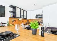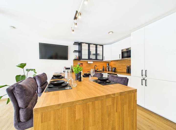 Die Wohnung ist komplett möbliert und bis ins kleinste Detail ausgestattet. Hochwertige Küchenutensilien, Smart-TV, Bettwäsche, Handtücher, Reinigungsutensilien und Internet sind bereits vorhanden. Einziehen, auspacken, wohlfühlen - alles ist vorbereitet. Es wird nichts weiter benötigt als der eigene Koffer.