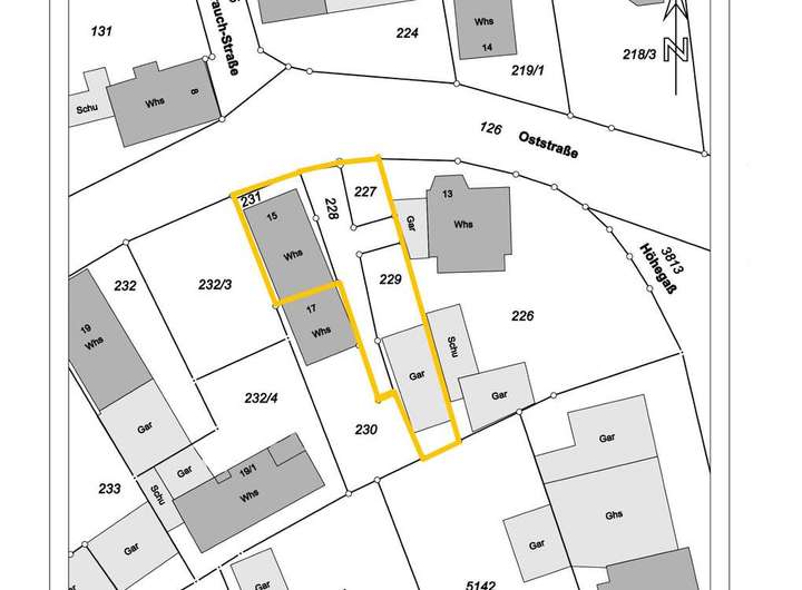 Der hintere Grundstücksteil (Wohnhaus) gehört nicht zum Verkaufsgegenstand und steht in fremdem Eigentum. Die dortige Bebauung sowie die Nutzung bleiben unverändert und sind nicht Bestandteil des Angebots.