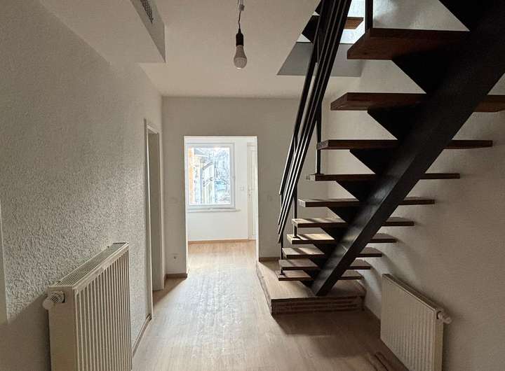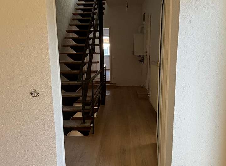 Das Haus erstreckt sich über zwei Vollgeschosse sowie ein ausgebautes Dachgeschoss und verfügt zusätzlich über einen Keller, eine Terrasse sowie einen kleinen Garten im rückwärtigen Bereich der Hofeinfahrt. Die Wohnfläche beträgt ca. 110qm und das Grundstück ist ca. 275qm groß.