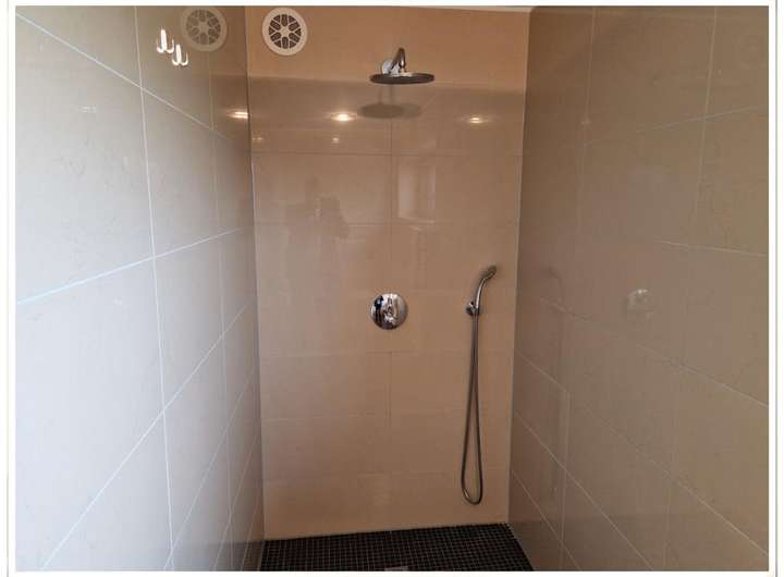 Heller Fliesenbelag in allen Etagen, in perfekter Harmonie mit der Fußbodenheizung;