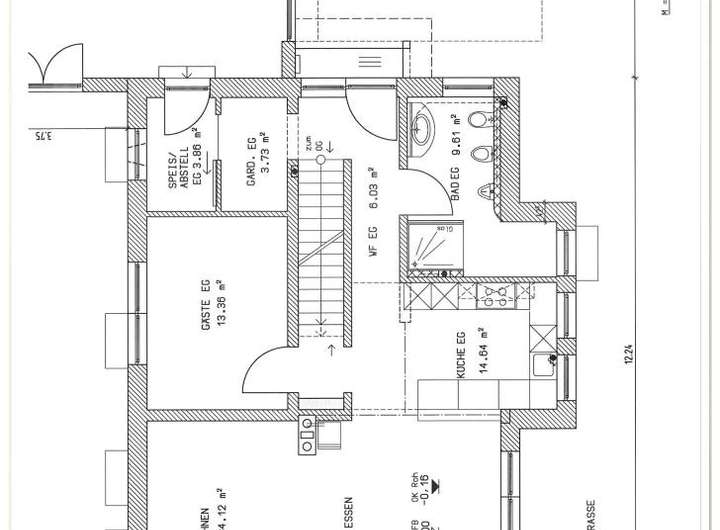 'Gäste-Bad' im EG, ebenfalls mit ebener Dusche, Waschbecken, WC, Urinal und Bidet, Anschlussmöglichkeit für Waschmaschine/Trockner, Fenster;