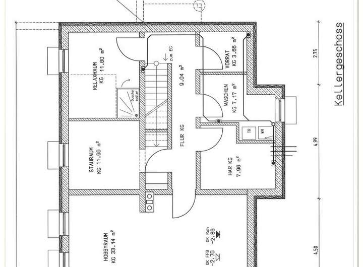 Wasserundurchlässige Kellerausführung, mit außenseitiger wandhoher Perimeterdämmung;