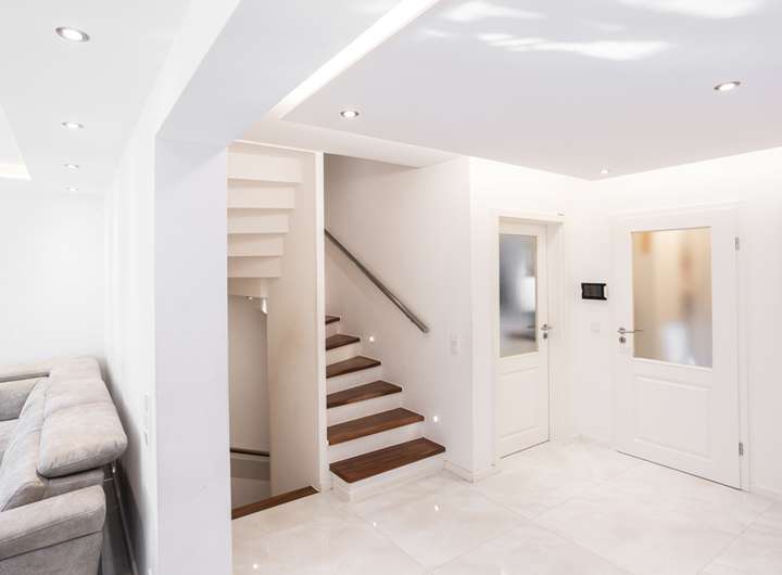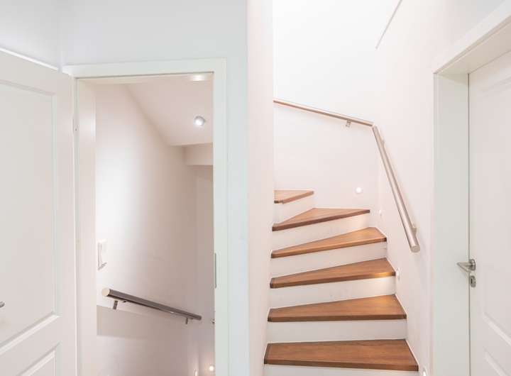 Nach dem Kauf wurde das Objekt umfassend modernisiert. Helle Bodenbeläge, weiße Fenster und Türen sowie freundliche Wand- und Deckenanstriche sorgen heute für ein einladendes, zeitgemäßes Wohngefühl. Die dunklen Holzbeläge an den Treppen bilden dabei einen eleganten Kontrast und unterstreichen den modernen Charakter des Hauses.