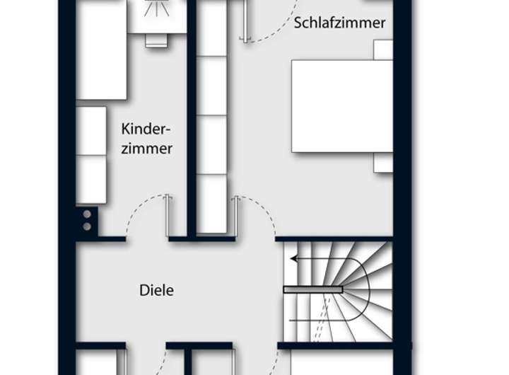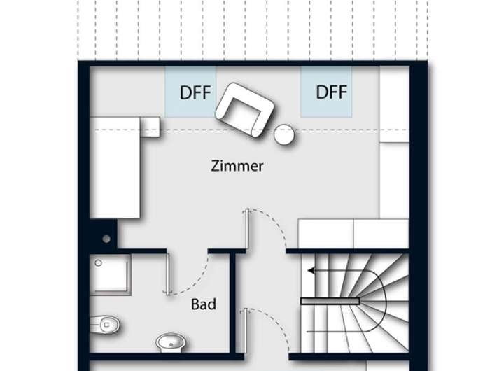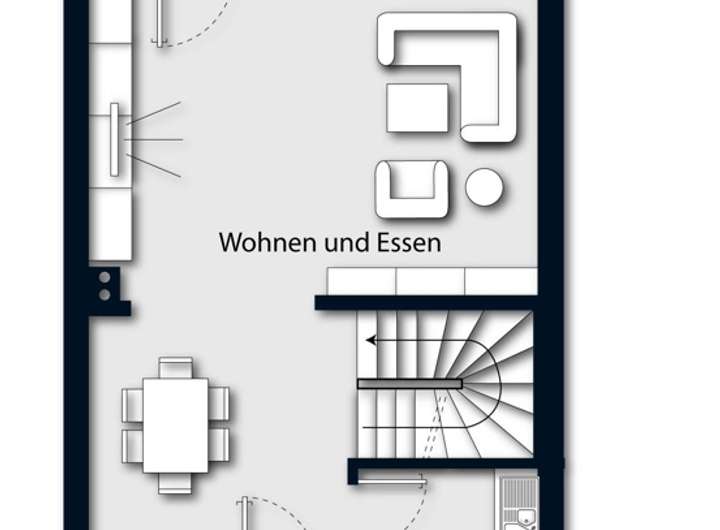Einrichtung und Möblierung im Grundriss sind frei erfunden.